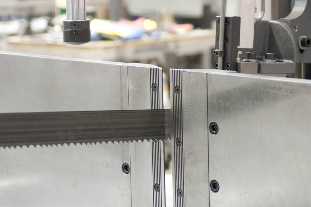 - Präzise, spielfrei vorgespannte Linearführungen für Sägerahmen und Bandführungsarm